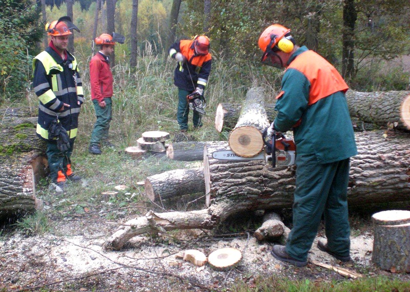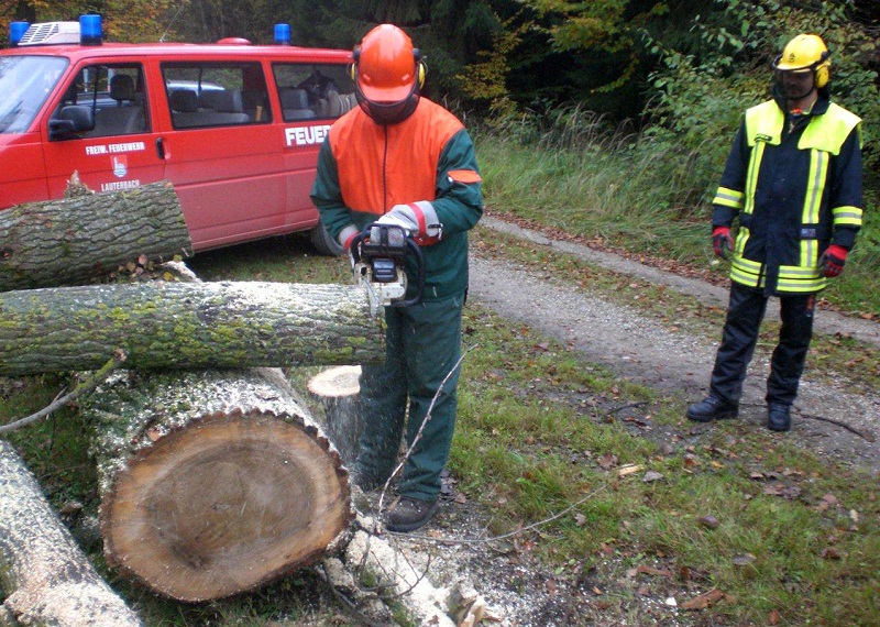 Zur Vermeidung von Unfällen bei der gefährlichen Arbeit fordert der Unfallversicherungsverband auch von den ehrenamtlichen Helfern der Feuerwehr besondere Nachweise über Kenntnisse und Fertigkeiten im Umgang mit der Motorsäge.