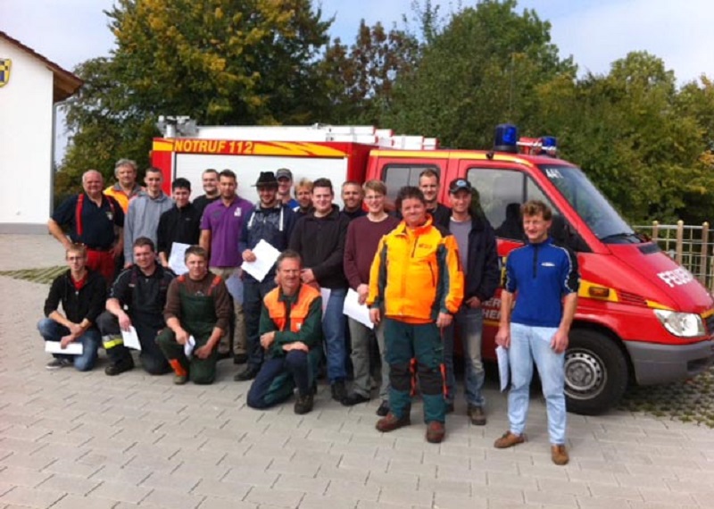 An der 10-stündigen theoretischen und praktischen Ausbildung nahmen insgesamt 15 Feuerwehrmänner aus den Feuerwehren Dachau, Eisenhofen, Großberghofen, Hohenzell, Karlsfeld, Tandern und Giebing teil. Die Theorie und Gerätekunde fand bei der Feuerwehr Eisenhofen statt, die praktische Ausbildung im Staatsforst bei Hohenzell.