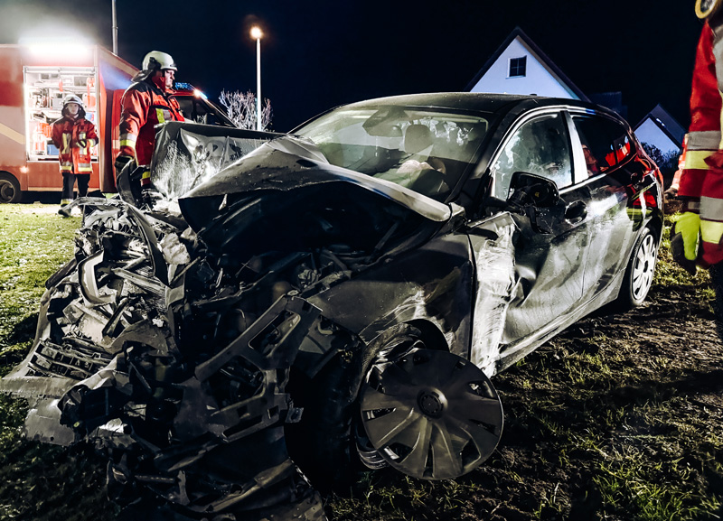 In der Nacht zum Sonntag (03.11.2024) wurden gegen 02:50 Uhr Feuerwehr und Rettungsdienst zu einem schweren Verkehrsunfall mit eingeklemmten Personen in Giebing alarmiert. Ein PKW war aus bislang ungeklärter Ursache in einer Rechtskurve von der Fahrbahn abgekommen, durchbrach einen Gartenzaun und kam schließlich an und teilweise in einem Wohnhaus zum Stillstand.Im betroffenen Teil des Hauses befand sich das Kinderzimmer, welches durch den Aufprall stark in Mitleidenschaft gezogen wurde. Glücklicherweise schlief zum Unfallzeitpunkt kein Kind in dem Raum, was Schlimmeres verhinderte.
