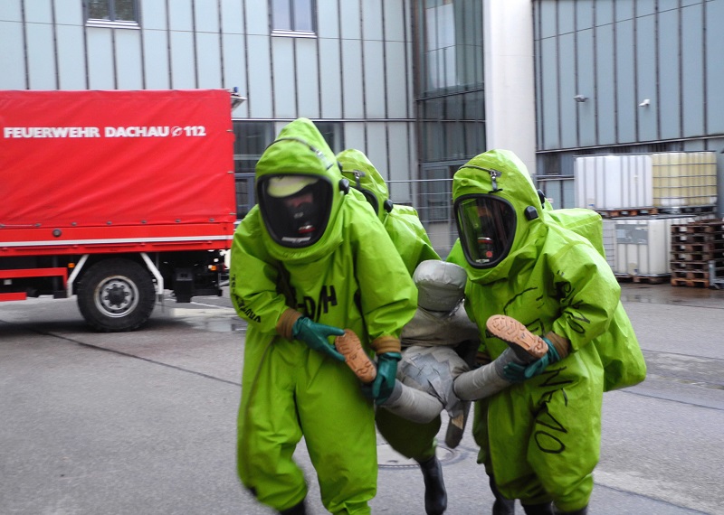 Dieser 2-tägige Kurs für Träger von Chemiekalienschutzanzügen wird in regelmäßigen Abständen von der Kreisbrandinspektion Dachau angeboten. Er besteht aus Grundlagen wie dem An- und Ausziehen des Anzuges, der Eingewöhnung und leichten Arbeiten im Anzug bis hin zu einer Einsatzübung mit auslaufenden Gefahrstoffen und Abdichten einer Leckage.