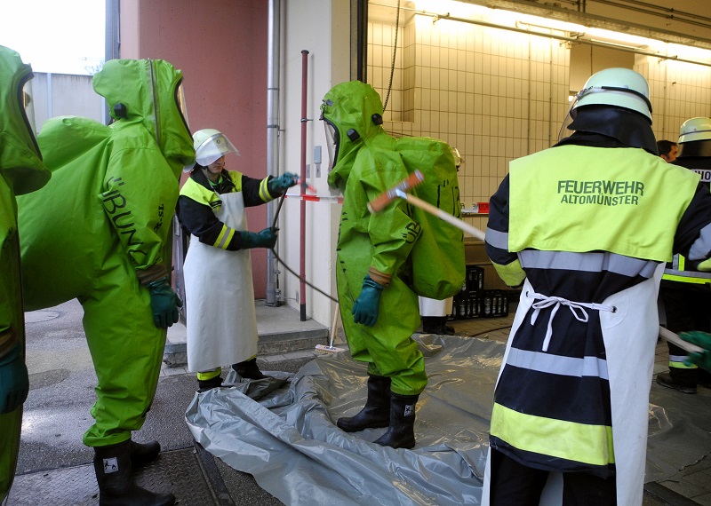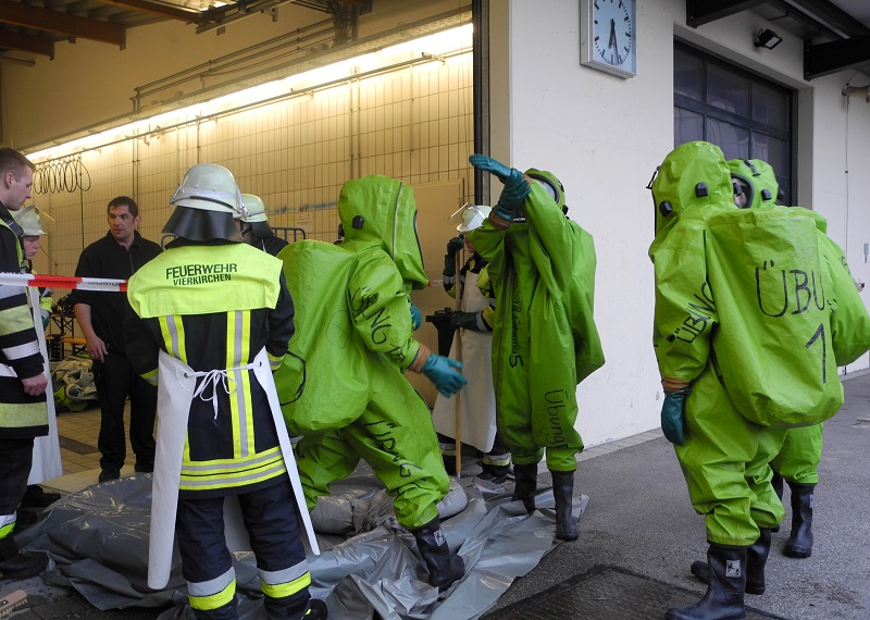 Bei ihren vielfältigen Einsätzen kommen die Feuerwehren auch mit gefährlichen Stoffen und Gasen in Berührung. Um sich davor zu schützen gibt es spezielle Chemikalienschutzanzüge, deren Träger neben einem Atemschutzgrundkurs auch eine spezielle Zusatzausbildung benötigen.