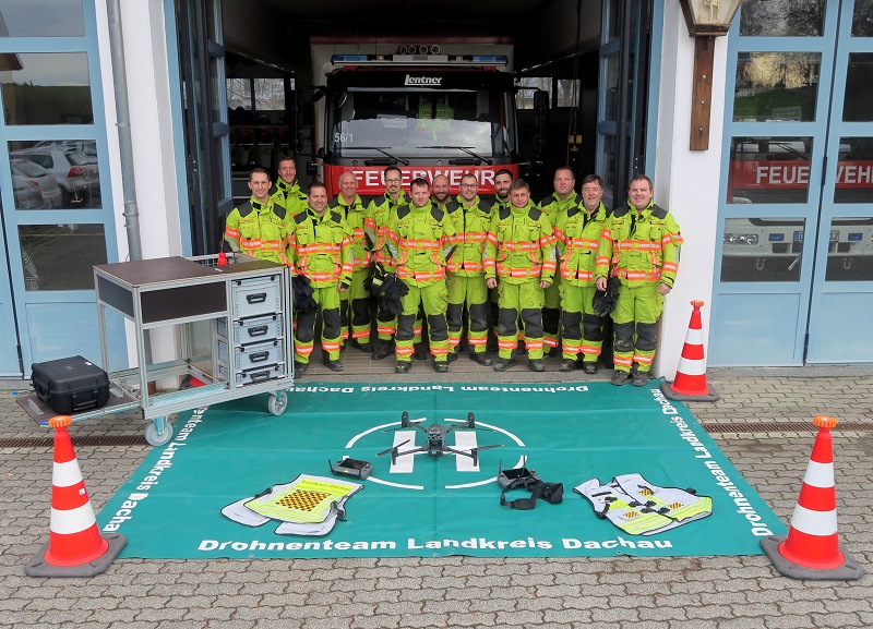 Das Drohnenteam des Landkreises Dachau wurde mit neuer Technik ausgestattet. Nach einer Einweisung am heutigen Samstag (14.01.2023) wurde die neue Drohne des Landkreises Dachau, welche bei der Feuerwehr Röhrmoos stationiert ist dort von speziell geschulten Einsatzkräften betrieben wird, in Dienst gestellt.