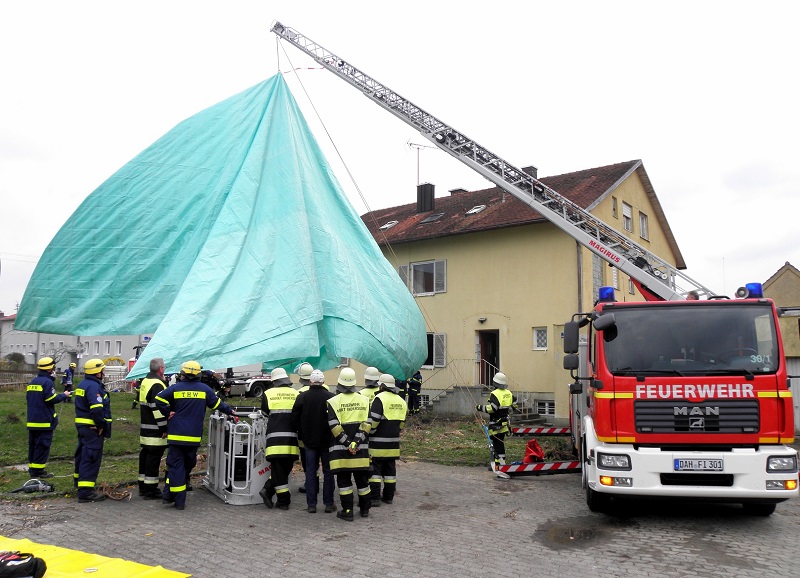 Notdächer - Feuerwehr und Technisches Hilfswerk üben gemeinsam