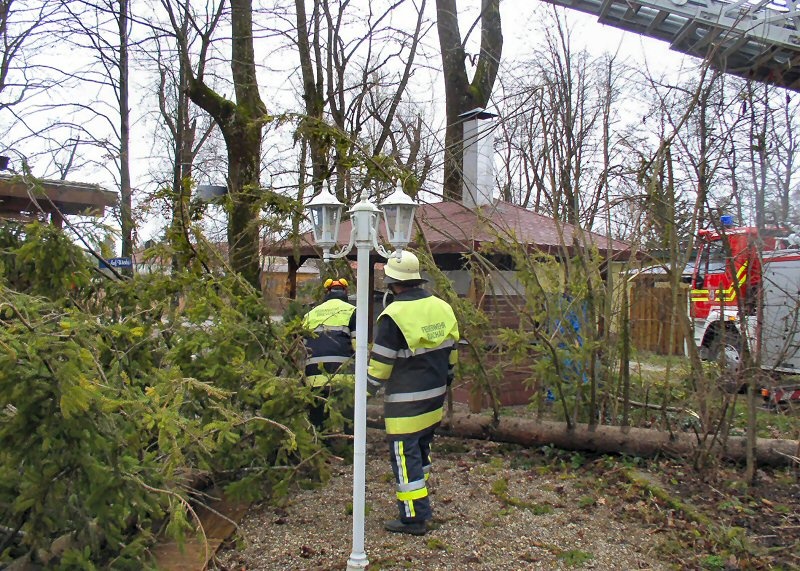 - Umgestürzte Bäume aus Gärten und Fahrbahnen zu entfernen