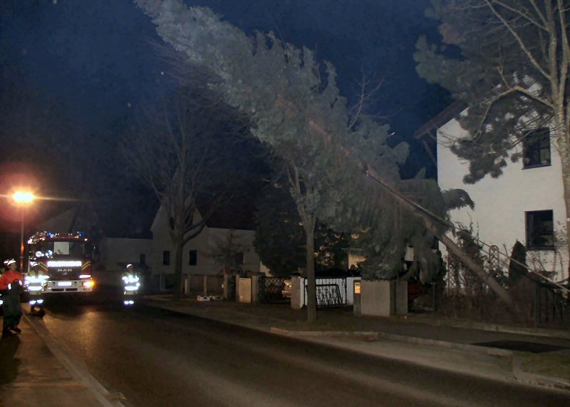Am Donnerstag und Freitag (18./19.01.07) durchzog der Orkan „Kyrill“ das gesamte Bundesgebiet und hinterließ auch im Landkreis Dachau seine Spuren.Obwohl sich die Einsatzzahlen am Donnerstag tagsüber noch in Grenzen hielten – nur in Karlsfeld kam es zu einem größeren Einsatz, nachdem dort das Dach einer Parkgarage abgedeckt wurde, und Kräfte der Karlsfelder Feuerwehr und des Technischen Hilfswerkes stundenlang mit der Beseitigung der Schäden beschäftigt waren – erhöhten sich die Einsatzzahlen ab 18.30 Uhr schlagartig! Orkan „Kyrill“ hatte mit voller Stärke den Landkreis erreicht !