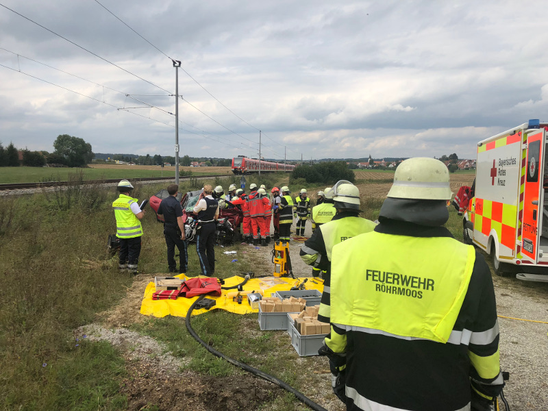 Die Richtung Indersdorf fahrende Bahn hat den PKW auf der Fahrerseite erfasst, durch die Wucht des Aufpralls wurde dieser ca. 50 Meter weit in eine angrenzende Fläche geschleudert. Die Lenkerin des Kia war alleine im Fahrzeug, sie wurde in dem stark deformierten Wrack eingeklemmt und musste von den Feuerwehren Indersdorf und Röhrmoos mit hydraulischem Rettungsgerät befreit werden. Nach der medizinischen Erstversorgung wurde die Schwerverletzte mit dem Rettungshubschrauber in eine Klinik zur weiteren Behandlung geflogen.