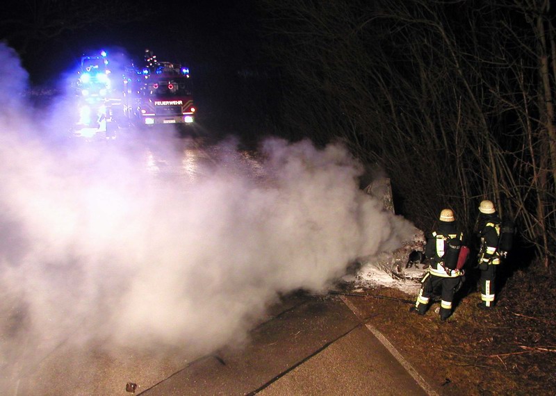 Aus bisher unbekannter Ursache kam es am Donnerstag, den 29. Januar 2009, gegen 22:30 Uhr zu einem Pkw-Brand am Himmelreichweg. Ein Pkw war von der Fahrbahn abgekommen, rammte eine Kapelle und wurde wieder auf die Fahrbahn zurück geschleudert.Beim Eintreffen der Freiwilligen Feuerwehr Dachau war der Fahrer bereits außerhalb des Autos und wurde vom Rettungsdienst versorgt.