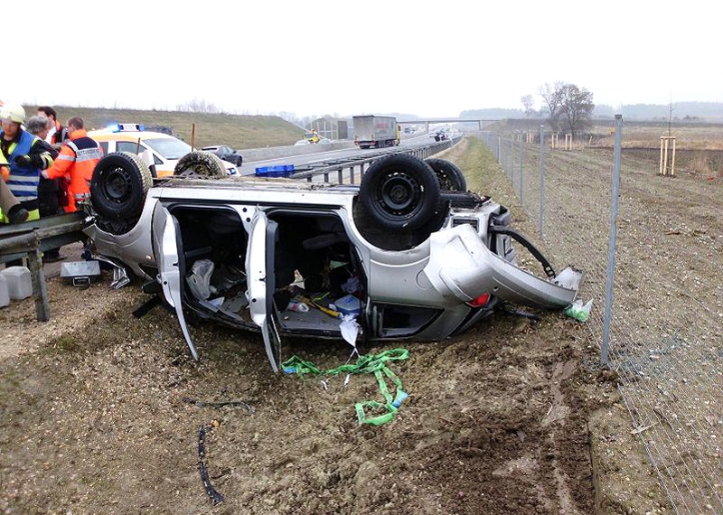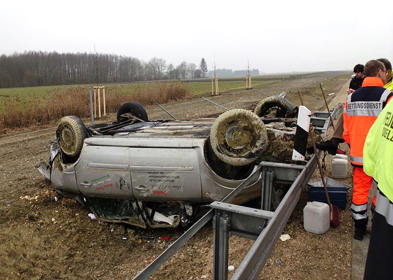 Drei Verletzte forderte ein Verkehrsunfall am Montagvormittag auf der Autobahn A8 in Fahrtrichtung München. Zwischen den Anschlussstellen Odelzhausen und Sulzemoos kam es gegen 10.30 Uhr zum Zusammenstoß zweier PKW´s, wobei sich eines der Fahrzeuge infolge der Kollision überschlug und erst neben der Leitplanke auf dem Dach zum Liegen kam.Da zunächst unklar war, ob Personen eingeklemmt sind, wurden die Feuerwehren Odelzhausen und Wiedenzhausen sowie die Kreisbrandinspektion alarmiert. Beim Eintreffen der ersten Kräfte waren glücklicherweise alle Personen aus ihren Fahrzeugen befreit und wurden von Ersthelfern versorgt.