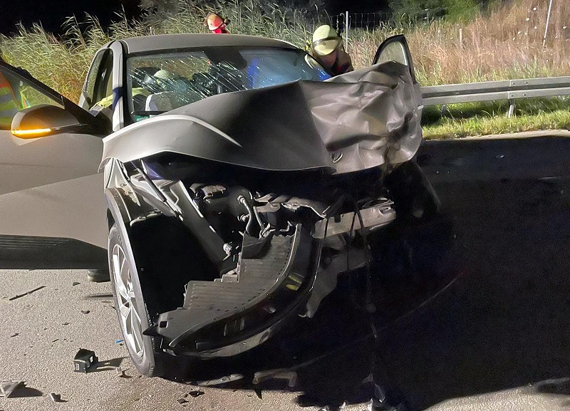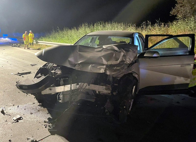 Der Lenker eines Hyundai IONIQ 5 war am frühen Morgen in Fahrtrichtung München unterwegs, als er in Höhe Fuchsberg ein Verkehrssicherungsanhänger übersah und mit seinem Elektrofahrzeug ungebremst in das Hindernis prallte.