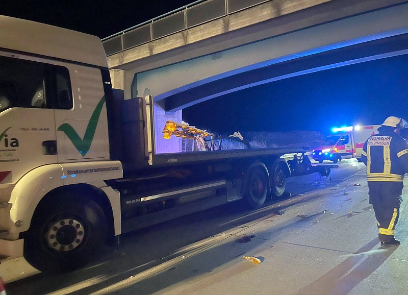 PKW-Lenker prallt auf der Autobahn in Verkehrssicherungsanhänger