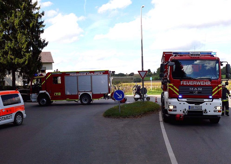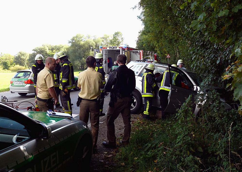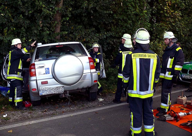 Am Freitag, den 28. September 2012, ereignete sich gegen 13:20 Uhr ein Unfall auf der Alten-Römer-Straße in Dachau. Aus bislang unbekannter Ursache kam ein stadtauswärts fahrender Toyota kurz nach der Amperbrücke nach links von der Fahrbahn ab und prallte gegen einen Baum.Der Fahrer wurde im Auto eingeklemmt. Beim Eintreffen der Feuerwehren aus Dachau und Karlsfeld wurde der Fahrer vom Rettungsdienst medizinisch versorgt. Nachdem sein Zustand stabilisiert war, entfernten die Einsatzkräfte das Dach mit hydraulischen Geräten. Anschließend konnte der Verletzte schonend aus dem Auto gehoben werden. Der Rettungsdienst transportierte ihn in die Amperklinik.