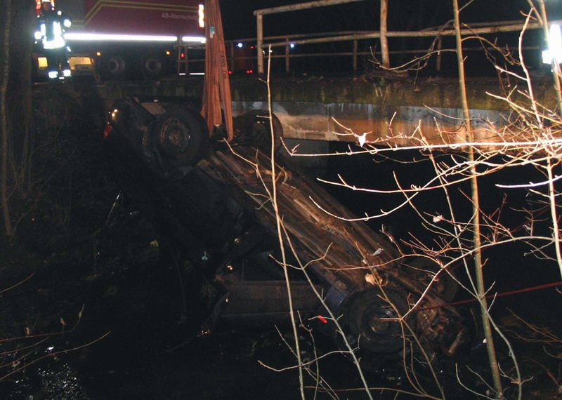 Die Feuerwehreinsatzkräfte aus Ampermoching, Dachau und Hebertshausen sicherten die Unfallstelle, übernahmen die Ausleuchtung und beseitigten Teile des beschädigten Brückengeländers – mit dem Kran des Wechselladerfahrzeugs wurde der Wagen schließlich aus dem Bach geborgen, um Umweltschäden zu vermeiden.