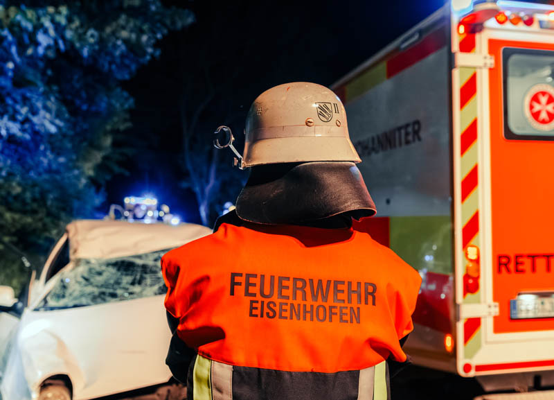 Zu einem Verkehrsunfall mit eingeklemmter Person zwischen Eisenhofen und Hof wurden am Montagabend (20.05.2024) um 22.21 Uhr Feuerwehr und Rettungsdienst alarmiert.Aus noch ungeklärter Ursache ist ein VW Lupo auf der Verbindungsstraße von der Fahrbahn abgekommen und hat sich mehrfach überschlagen. Die beiden Insassen wurden dabei verletzt, entgegen der ursprünglichen Einsatzmeldung war jedoch keine Person im Fahrzeug eingeklemmt.