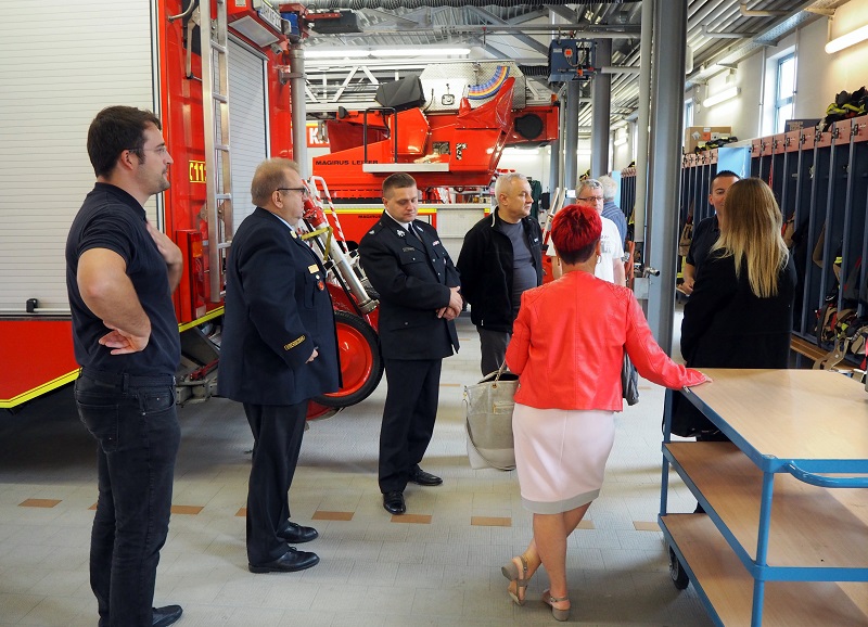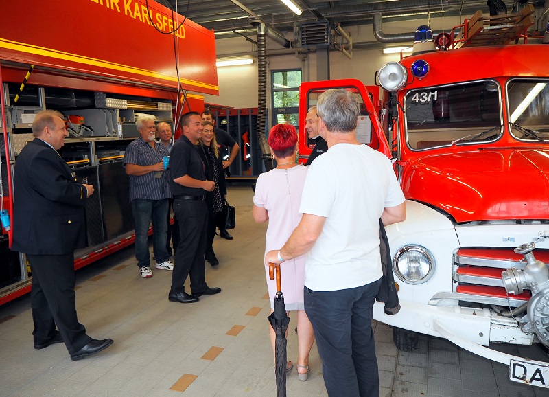 Anlässlich des Volksfestes war auch eine Delegation des polnischen Partnerlandkreises Oswiecim (Auschwitz) zu Gast in Dachau. Ein Teil der Gruppe besuchte am vergangenen Samstag (12.08.2017) die Feuerwehr Karlsfeld, um sich über über das deutsche Rettungssystem zu informieren, darunter auch der Feuerwehrchef des polnischen Landkreises.