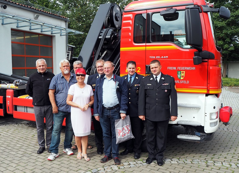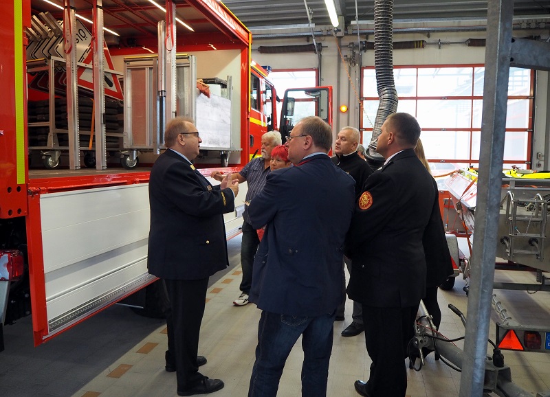 Kommandant Michael Peschke und Stefan Theil haben die Gäste im Namen der Feuerwehr Karlsfeld begrüßt. Im Anschluss führten Sie die Delegation durch das Feuerwehrhaus und erklärten die technischen Einrichtungen. Besonders beeindruckt zeigten sich die Polen von den Fahrzeugen wie dem modernen Wechselladersystem sowie dem Oldtimer der Karlsfelder Wehr, einem Opel Blitz LF 8.