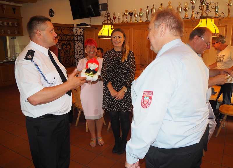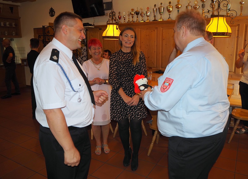 Zur Verabschiedung überreichte Kreisbrandrat Franz Bründler kleine Gastgeschenke verbunden mit der Vorfreude auf weitere Treffen. Besonders im Bereich der Jugendarbeit soll die Kooperation forciert werden.