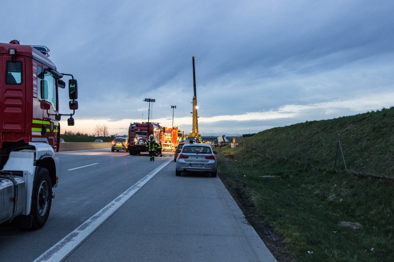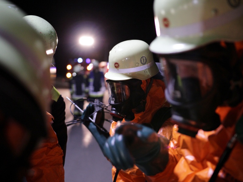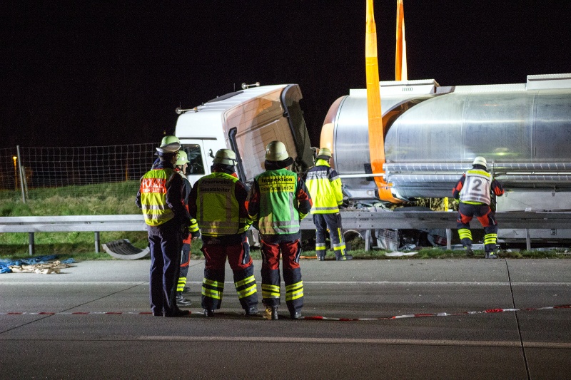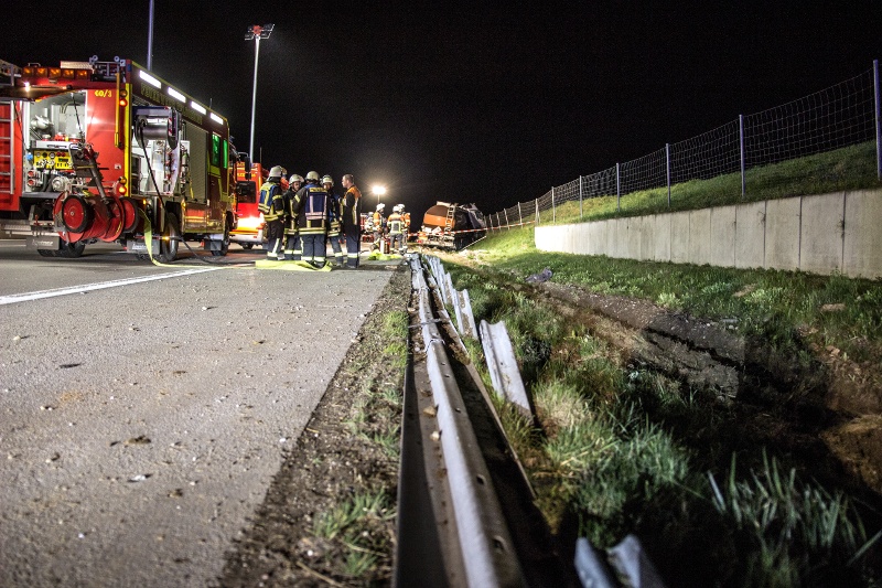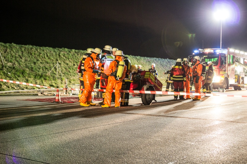 Nachdem die Autobahn in Fahrtrichtung München gesperrt und der Brandschutz sichergestellt war, ging ein Trupp in Chemikalienschutzanzügen zum Unfallfahrzeug vor, um dieses auf eine mögliche Leckage zu erkunden. Nach kurzer Zeit konnte jedoch Entwarnung gegeben werden, lediglich der Kraftstofftank des Fahrzeugs war aufgerissen und Dieselkraftstoff ist ins Erdreich gelangt.