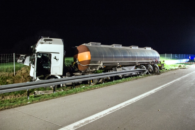 Der Fahrer blieb glücklicherweise unversehrt und konnte sein Fahrzeug selbst verlassen. Da jedoch eine Beschädigung des Tankaufliegers, in dem ein entzündbarer und giftiger Stoff gelagert war, nicht ausgeschlossen werden konnte, rückte neben den örtlichen Feuerwehrkräften auch der Gefahrgutzug des Landkreises an.