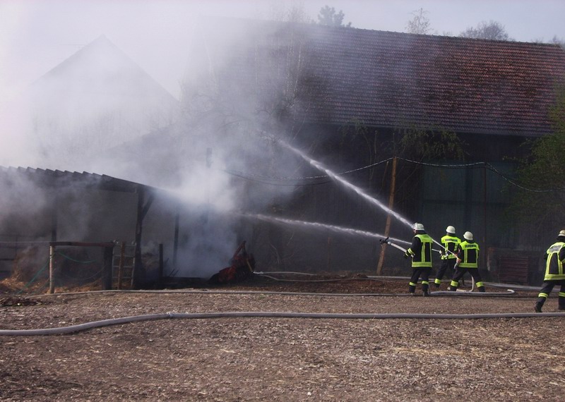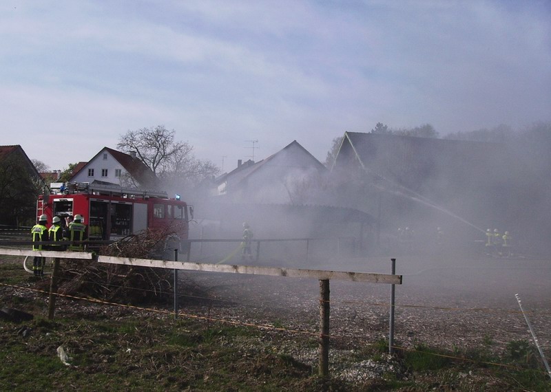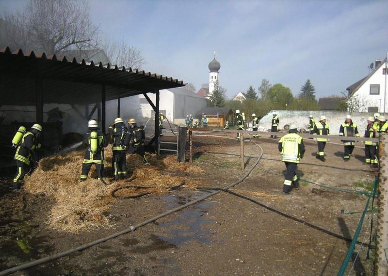 Eine landwirtschaftlich genutzte Gerätehalle, in der neben einem Anhänger diverse Geräte und reichlich Stroh gelagert war, fiel am Donnerstag Vormittag im Bergkirchener Ortsteil Oberbachern den Flammen zum Opfer. Nachbarn hatten eine starke Rauchentwicklung bemerkt und sofort Feuerwehr und Polizei verständigt.Nur dem schnellen Eingreifen der örtlichen Feuerwehr, sowie den umliegenden Wehren war es zu verdanken, dass das Feuer nicht auf angrenzende Gebäude übergreifen konnte.