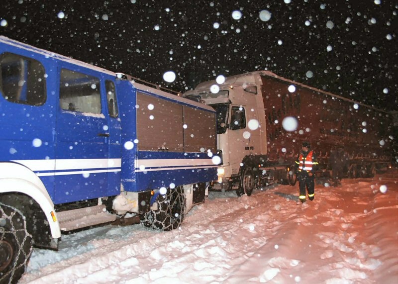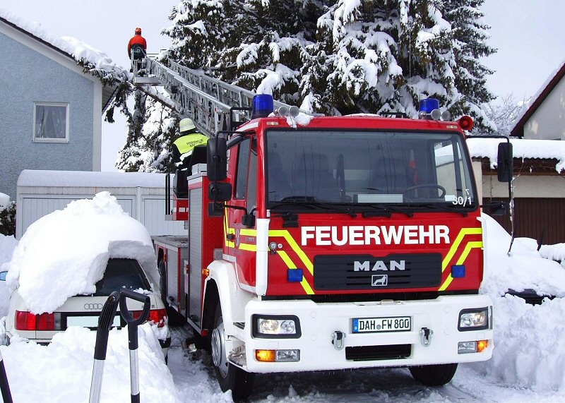 Ein neuerliches Schneechaos, nur diesmal im eigenen Landkreis, bescherte den Einsatzkräften von BRK, Feuerwehr, Notarzt, Polizei und THW am Samstag eine Menge an Arbeit. Während in den Vormittagsstunden lediglich zwei Einsätze – Bäume über Fahrbahn – zu verzeichnen waren, stiegen die Einsatzzahlen im Laufe des Nachmittags erheblich an, nachdem immer mehr Bäume unter der Schneelast knickten und auf Straßen, Häuser und auf Pkw´s fielen.Zeitweise musste z.B. der Petersberg aufgrund der dort herrschenden Straßenverhältnisse gesperrt werden; festsitzende Pkw´s wurden von den jeweils örtlichen Einsatzkräften wieder flott gemacht.; aber auch Strassen, die durch Waldgebiete führen, mussten aufgrund der Witterungsverhältnisse für den Verkehr gesperrt werden. Dramatisch spitzte sich die Lage auf der A 8, zwischen den Anschlussstellen Dachau und Adelzhausen zu – dort ging gar nichts mehr.Nachdem das BRK in Odelzhausen Notbetten für die im Stau Stehenden errichtete und die Verkehrsteilnehmer auf der A 8 mit Getränken versorgte, war das THW hauptsächlich mit dem „Flottmachen“ der auf den Anhöhen hängenden Brummis beschäftigt. Die Feuerwehren Einsbach, Günding und Sulzemoos waren zur Sperrung der Einfahrten Dachau und Sulzemoos in Richtung Stuttgart eingesetzt; zusätzlich kam der Rüstwagen der Dachauer Feuerwehr zum Einsatz, um das THW bei dessen Arbeiten zu unterstützen.Insgesamt kamen am Samstag aufgrund der herrschenden Witterungsverhältnisse 28 Feuerwehren des Landkreises bei 117 Alarmierungen mit 291 Feuerwehrmännern zum Einsatz. Im Laufe des Sonntags entspannte sich zwar die Lage, dennoch mussten mehrere Feuerwehren jedoch alarmiert werden, um hauptsächlich umgestürzte Bäume zu entfernen.