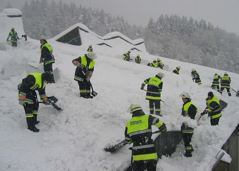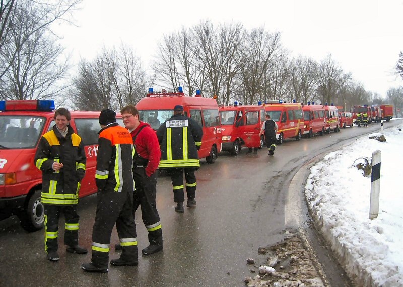 Nur wenige Stunden nach dem Brand in Gröbenried am vergangenen Freitag ging beim Landratsamt Dachau ein Hilfeersuchen der Regierung von Oberbayern ein, mit der Bitte, aufgrund der Schneekatastrophe in Niederbayern Feuerwehrkräfte aus dem Raum Dachau nach Deggendorf zu entsenden, um die dortigen Einsatzkräfte zu unterstützen und abzulösen. Nur wenige Stunden nach dem Brand in Gröbenried am vergangenen Freitag ging beim Landratsamt Dachau ein Hilfeersuchen der Regierung von Oberbayern ein, mit der Bitte, aufgrund der Schneekatastrophe in Niederbayern Feuerwehrkräfte aus dem Raum Dachau nach Deggendorf zu entsenden, um die dortigen Einsatzkräfte zu unterstützen und abzulösen. Nur wenige Stunden nach dem Brand in Gröbenried am vergangenen Freitag ging beim Landratsamt Dachau ein Hilfeersuchen der Regierung von Oberbayern ein, mit der Bitte, aufgrund der Schneekatastrophe in Niederbayern Feuerwehrkräfte aus dem Raum Dachau nach Deggendorf zu entsenden, um die dortigen Einsatzkräfte zu unterstützen und abzulösen. Nur wenige Stunden nach dem Brand in Gröbenried am vergangenen Freitag ging beim Landratsamt Dachau ein Hilfeersuchen der Regierung von Oberbayern ein, mit der Bitte, aufgrund der Schneekatastrophe in Niederbayern Feuerwehrkräfte aus dem Raum Dachau nach Deggendorf zu entsenden, um die dortigen Einsatzkräfte zu unterstützen und abzulösen.Gegen 08.30 Uhr trafen sich die zuständigen Mitarbeiter des Landratsamtes zusammen mit Kreisbrandrat Rudi Reimoser und den Kreisbrandinspektoren Wolfgang Blank und Heinrich Schmalenberg, um die Gemeinden und die Kommandanten vorab entsprechend zu informieren.Bereits zwei Stunden (!) später standen 115 hochmotivierte Feuerwehrmänner aus den Wehren Altomünster, Ampermoching, Dachau, Günding, Haimhausen, Hebertshausen, Hilgertshausen, Indersdorf, Karlsfeld, Odelzhausen, Pasenbach, Petershausen, Röhrmoos, Vierkirchen und Weichs am Feuerwehrhaus in Dachau bereit, um die Fahrt ins Katastrophengebiet anzutreten.Nach zweistündiger Fahrt erreichten die Kräfte das Ziel, wo ihnen von der örtlichen Einsatzleitung, die im Feuerwehrhaus Deggendorf untergebracht war, nicht wie ursprünglich angegeben das Hallenbad, sondern das Eisstadion als Objekt zugewiesen wurde. Dazu Kreisbrandinspektor Schmalenberg: „Wir dachten, als wir kurz vor Deggendorf waren, wir sind in einer anderen Welt !“Der Auftrag in Deggendorf lautete: „Das Dach des Eisstadions, wo Schneemassen in Höhe von 1,5 bis 2 Metern Höhe lagen, von diesen zu befreien „ – was den Feuerwehrkräften aus dem Dachauer Land auch gelang und zwar in mehrstündiger, knochenharter Arbeit ! Mit Bedacht und entsprechender Vorsicht, sowie Eigensicherung räumten die Kräfte aus dem Landkreis Dachau die Schneelast vom Hallendach.