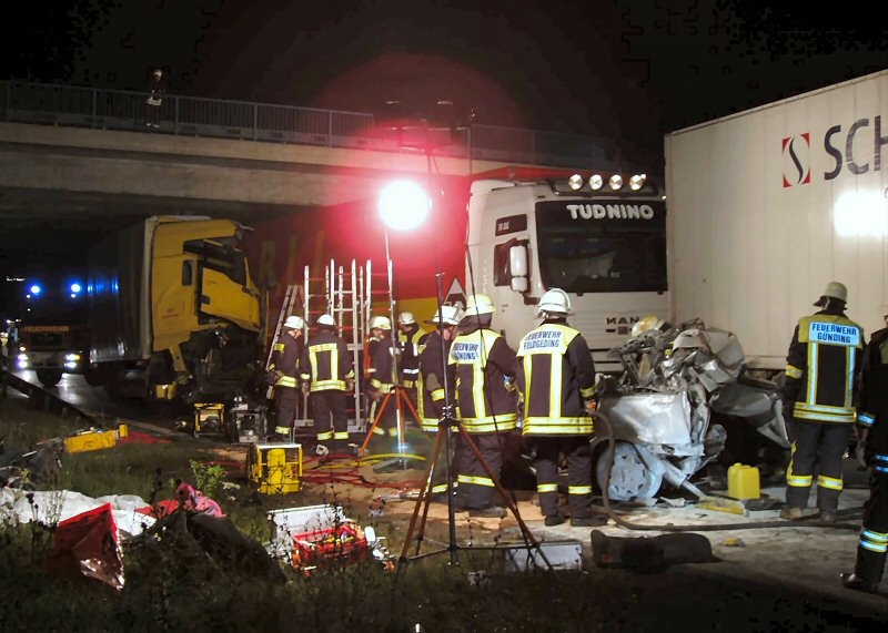Den alarmierten Feuerwehren aus den Landkreisen Dachau (Dachau, Feldgeding und Günding) und Fürstenfeldbruck (Geiselbullach, Grasslfing und Olching) mit knapp 100 Einsatzkräften bot sich ein Bild der Verwüstung.Sowohl für den Lenker des Lkw´s, sowie für die beiden Insassen eines Pkw´s, kam jede Hilfe zu spät – sie erlitten tödliche Verletzungen.Insgesamt wurden bei der Karambolage vier Personen in ihren Fahrzeugen eingeklemmt und mussten von Kräften der Feuerwehr mittels schwerem technischen Gerät aus den Fahrzeugen befreit werden.
