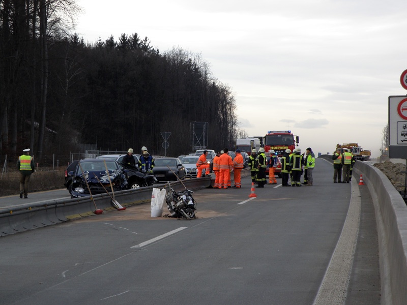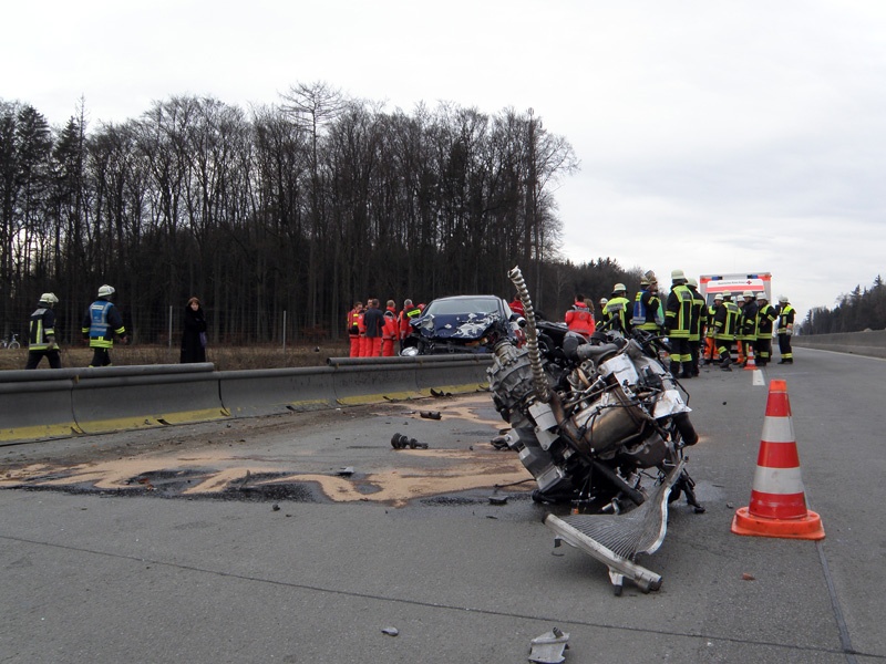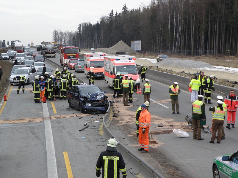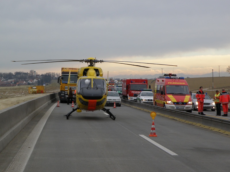 Schwierig gestaltete sich die Anfahrt für Feuerwehr, Notarzt, Polizei und Rettungsdienst, da sämtliche Fahrbahnen im Baustellenbereich sowohl in Richtung München, als auch Richtung Stuttgart hoffnungslos mit Fahrzeugen überfüllt war. Teilweise über die Gegenfahrbahn, Feldwege, Schotterstraßen und Äcker gelang es den Rettungskräften schließlich die Einsatzstelle zu erreichen.