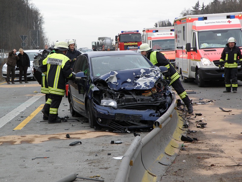 Fünf Personen erlitten bei dem Unfall leichte bis mittlere Verletzungen und wurden nach der medizinischen Erstversorgung durch Notärzte und Rettungsdienst mit Rettungswagen und einem Rettungshubschrauber in die Kliniken Dachau und München-Schwabing gebracht. Eine Person musste von Kräften der Feuerwehr mittels Rettungsschere und - spreizer aus dem Fahrzeug befreit werden.