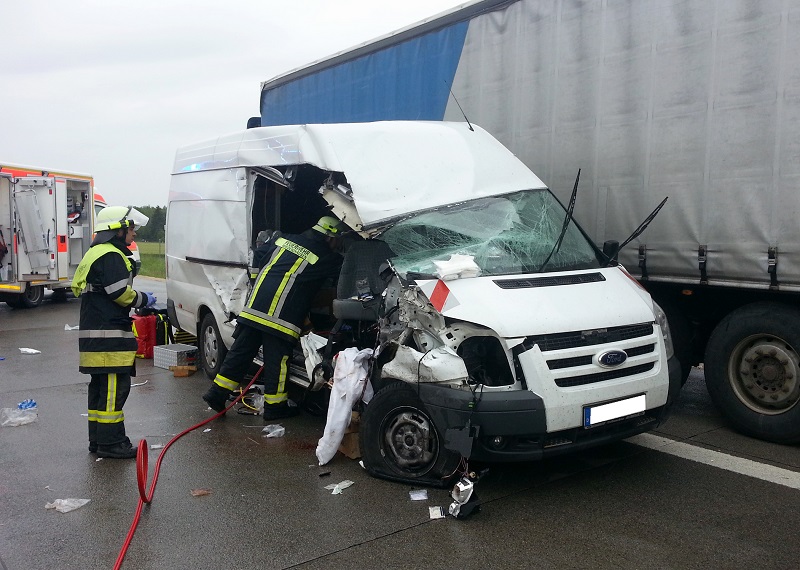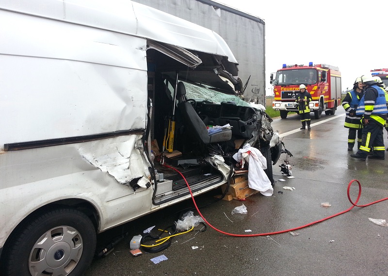 Ein schwerer Verkehrsunfall hat sich am Montagabend (03.06.2013) auf der Autobahn zwischen den Anschlussstellen Odelzhausen und Sulzemoos ereignet. Aus noch ungeklärter Ursache ist der 37-jährige Fahrer eines Ford Transit zu weit nach rechts geraten und hat dabei einen auf der rechten Spur fahrenden Sattelzug gestreift.