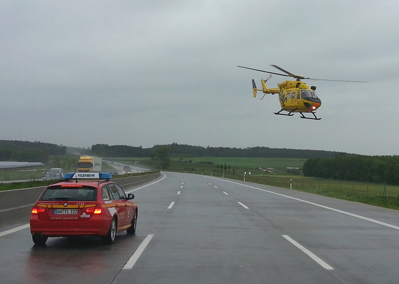 Während der Landung des Rettungshubschraubers musste die Autobahn komplett gesperrt werden, anschließend konnte der linke Fahrstreifen wieder frei gegeben werden.