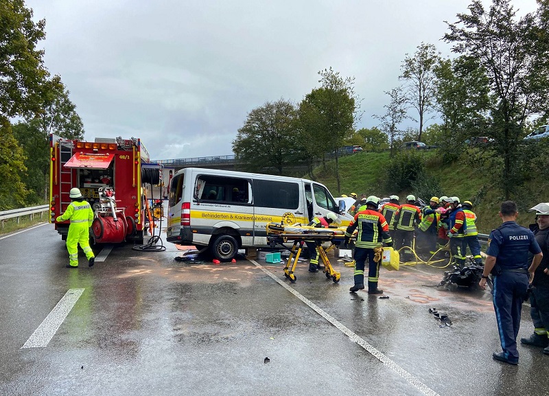 Der Fahrer des Sprinters befand sich zum Unfallzeitpunkt alleine im Fahrzeug und wurde mittelschwer verletzt. Er wurde durch den Aufprall in seinem Fahrzeug eingeschlossen und musste ebenso von den Rettungskräften befreit werden.