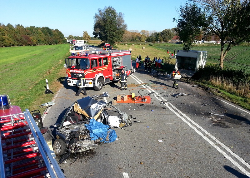Der PKW-Fahrer wurde durch die Wucht des Aufpralls so schwer verletzt, dass er noch an der Unfallstelle seinen schweren Verletzungen erlag, der Fahrer des LKW wurde mit schweren Verletzungen vom Rettungshubschrauber in ein Krankenhaus zur weiteren Behandlung eingeliefert.