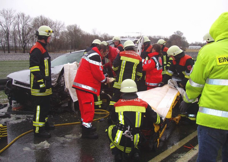 Ein weiterer schwerer Verkehrsunfall ließ am Samstag Mittag (01.03.08) die Feuerwehren Dachau und Karlsfeld tätig werden. Anrufer meldeten einen Unfall auf der B 471 mit ungenauer Örtlichkeit, vermutlich in Höhe der Ausfahrt Karlsfeld. Die Karlsfelder Feuerwehr rückte innerhalb kürzester Zeit mit mehreren Fahrzeugen aus, um die genaue Unfallstelle zu lokalisieren – diese befand sich dann zwischen den Ausfahrten Dachau-Süd und Dachau-Mitte.