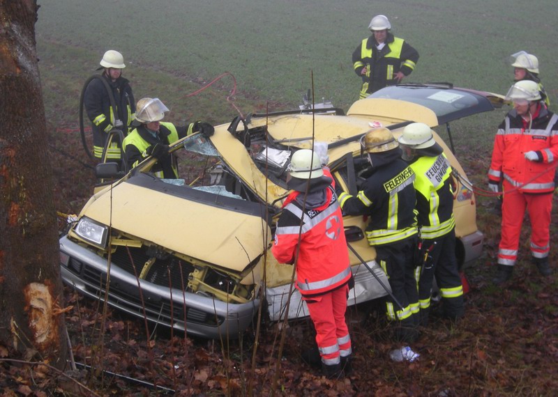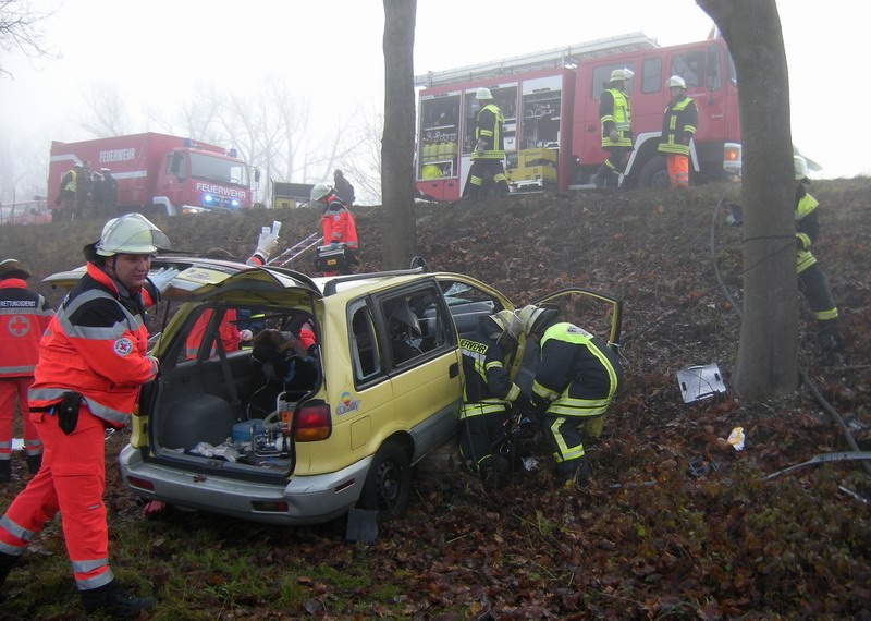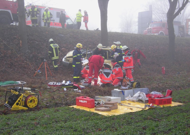 Ein schwerer Verkehrsunfall am Montag Vormittag (08.12.08) sorgte für einen weiteren Einsatz der Feuerwehren im Landkreis Dachau.Auf der B 471, nahe der Ausfahrt Dachau-West, kam aus noch ungeklärter Ursache die Lenkerin eines Pkw´s von der Fahrbahn ab und rutschte über eine Böschung – dabei erlitt sie schwere Verletzungen und wurde in Ihrem Fahrzeug eingeklemmt.