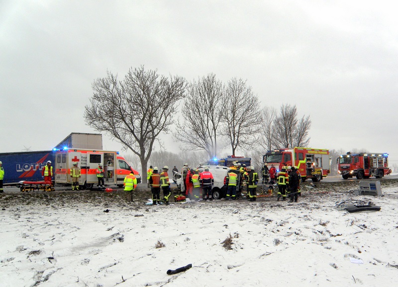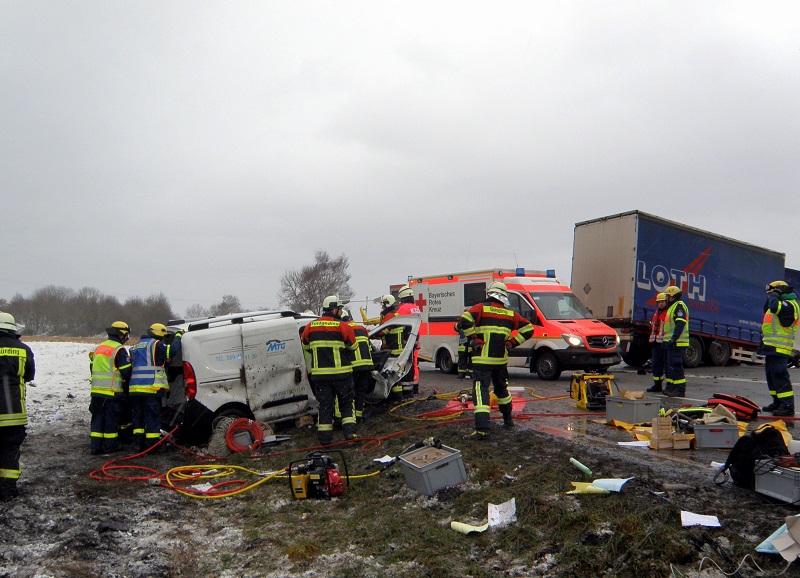 Ein schwerer Verkehrsunfall hat sich am Mittwochnachmittag (04.01.2017) gegen 14 Uhr auf der B471 ereignet. Aus noch ungeklärter Ursache sind zwischen den Anschlussstellen Dachau-Süd und Feldgeding ein Lastzug und ein Kleintransporter frontal zusammengeprallt.