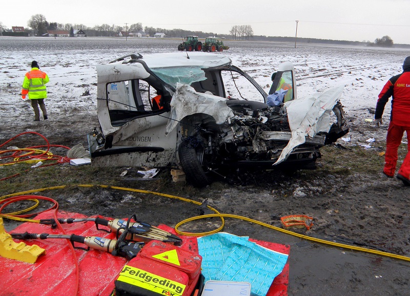 Durch die Wucht des Aufpralls sind die beiden beteiligten Fahrzeuge von der Fahrbahn abgekommen. Der Lenker des Kleintransporters wurde in seinem Fahrzeug eingeklemmt und musste von der Feuerwehr mit hydraulischem Rettungsgerät befreit werden.