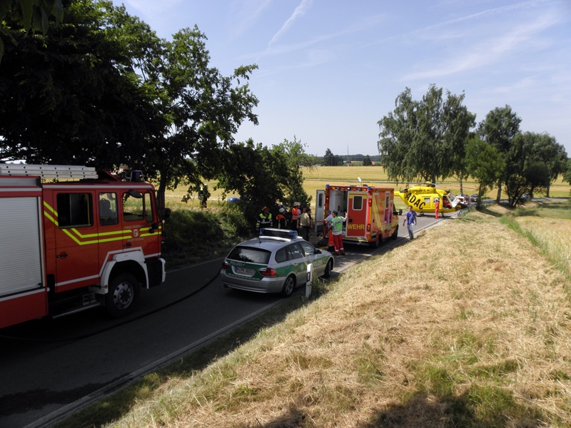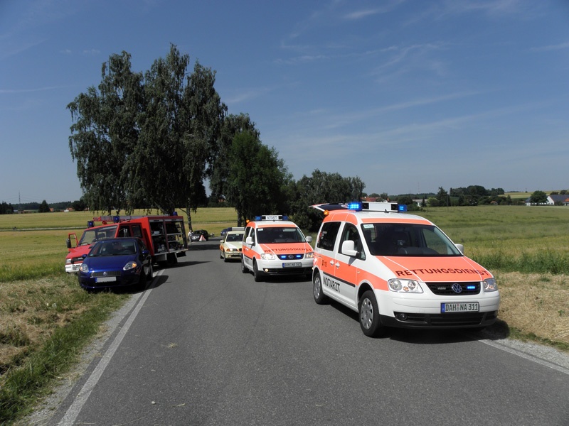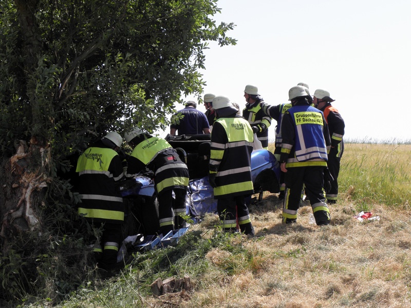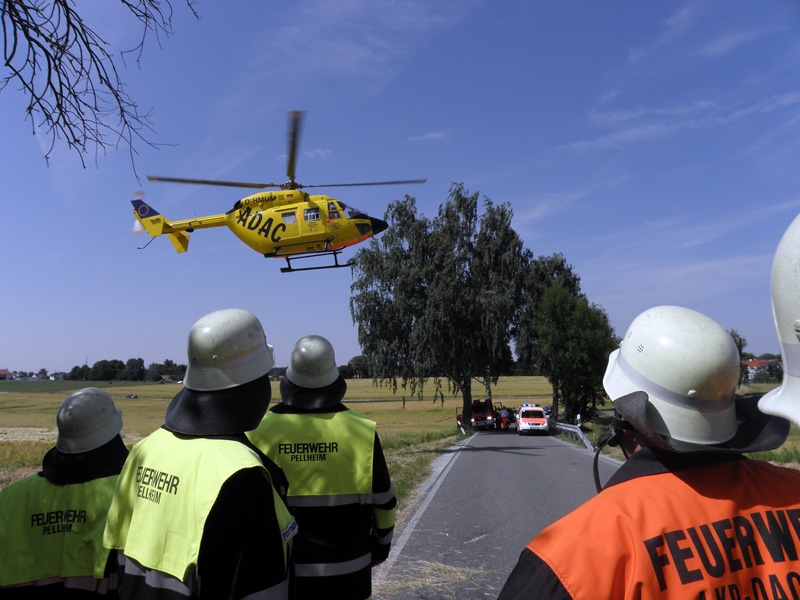 Zwei Verletzte forderte am Samstagnachmittag ein Verkehrsunfall, der sich auf der Strasse von Pellheim nach Dachau ereignete. Aus noch ungeklärter Ursache kam der Lenker eines Fiat-Sportwagens von der Fahrbahn ab und prallte mit erheblicher Wucht gegen einen Baum – dabei erlitten beide Insassen schwere Verletzungen.Gegen 15.00 Uhr informierten Anrufer über Notruf Polizei und Integrierte Leitstelle von dem Vorfall und teilten mit, dass zwei Personen eingeklemmt seien, worauf neben Polizei, Notarzt und Rettungsdienst die Feuerwehren Dachau, Hebertshausen und Pellheim alarmiert wurden.