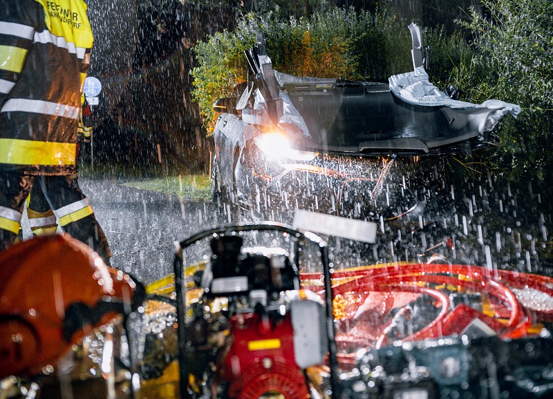 Bei der Erkundung stellte sich heraus, dass die Lenkerin des BMW durch den Aufprall im Fahrzeug eingeschlossen wurde, sie musste von der Feuerwehr mit hydraulischem Rettungsgerät befreit werden. Ihr Beifahrer hatte beim Eintreffen der Feuerwehr das Fahrzeug bereits selbst verlassen können und wurde im Auto einer Ersthelferin betreut.