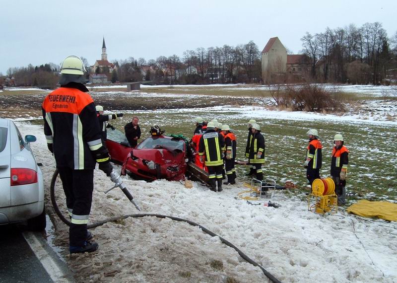 Mit schwerem technischen Gerät befreiten Einsatzkräfte der Feuerwehren Egenhofen (Lkr. FFB) und Pfaffenhofen/Glonn den Verletzten aus seiner misslichen Lage.