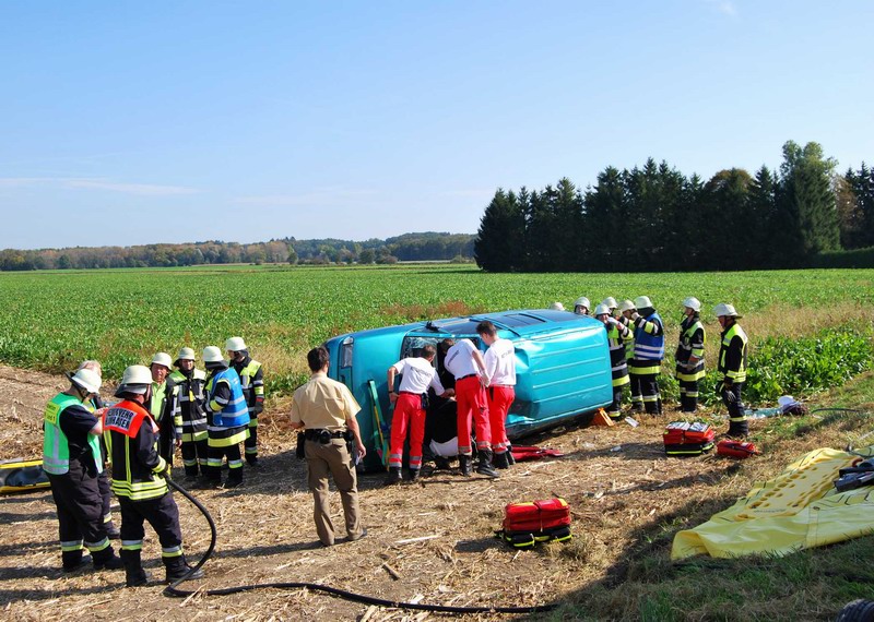 Aus noch ungeklärter Ursache kam am Mittwoch Mittag eine Fiat-Lenkerin auf der Ampenpettenbacher Straße im Ortsgebiet von Haimhausen von der Fahrbahn ab und kam mit ihrem Fahrzeug seitlich in einem Acker zum Liegen.Da sich die verletzte Fahrerin nicht aus eigener Kraft aus dem Wagen befreien konnte, wurden neben Polizei, Notarzt und Rettungsdienst die Feuerwehren Amperpettenbach, Fahrenzhausen, Haimhausen und Hebertshausen zur Hilfeleistung alarmiert.
