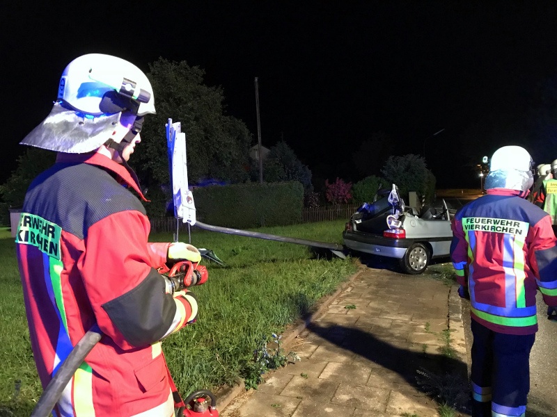 In den frühen Morgenstunden gegen 02.30 Uhr kam am Donnerstag (24.05.2018) aus noch ungeklärter Ursache ein PKW im Ortsbereich Vierkirchen von der Fahrbahn ab.Die Fahrerin verlor innerorts in einer Kurve die Kontrolle über Ihr Fahrzeug und kam von der Kreisstraße DAH9 ab. Das Fahrzeug prallte daraufhin gegen eine Straßenlaterne.