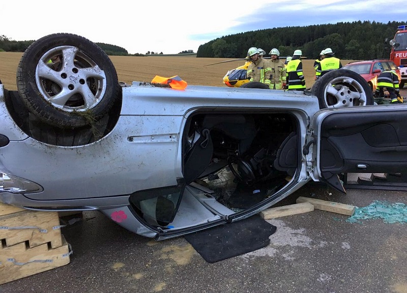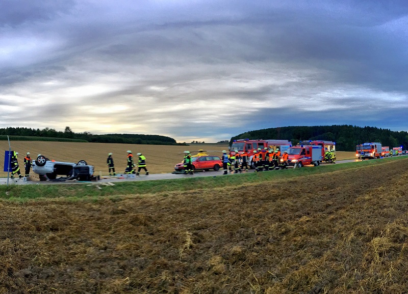 Zu einem schweren Verkehrsunfall ist es am Dienstagabend (08.08.2017) gegen 19.00 Uhr auf der Staatsstraße 2047 zwischen Oberzeitlbach und Pfaffenhofen gekommen. Aus noch ungeklärter Ursache kam der Fahrer eines Peugeot von der Fahrbahn ab und überschlug sich danach. Die Beifahrerin wurde dabei im Fahrzeug eingeklemmt.