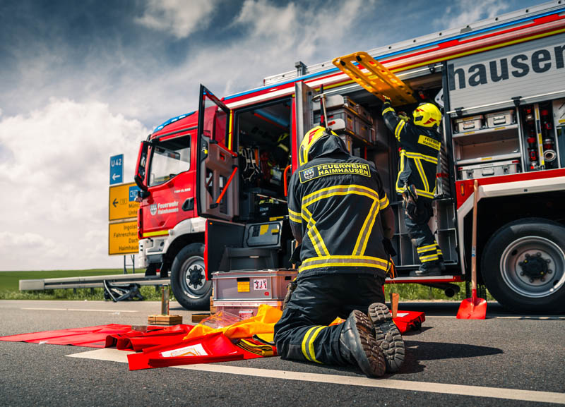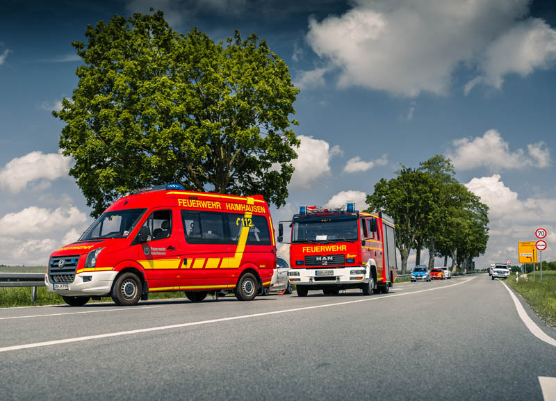 Die Feuerwehr kümmerte sich neben der Personenrettung um die Verkehrsabsicherung und unterstützte bei der Fahrzeugbergung.