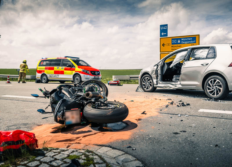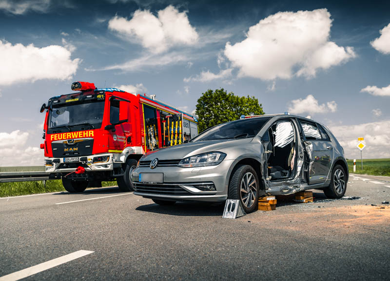 Ein schwerer Verkehrsunfall hat sich am Donnerstagmittag (16.05.2024) auf der Bundesstraße 13 bei Haimhausen ereignet; um 11.35 Uhr wurden Feuerwehr und Rettungsdienst alarmiert, nachdem ein VW Golf und ein Motorrad aus noch ungeklärter Ursache zusammengestoßen sind.Die Lenkerin des VW Golf wurde durch den Zusammenprall in ihrem Fahrzeug eingeklemmt und musste von der Feuerwehr mit hydraulischem Rettungsgerät befreit werden. Sie wurde nach der medizinischen Erstversorgung durch den Rettungsdienst zur weiteren Behandlung in ein Klinikum eingeliefert.