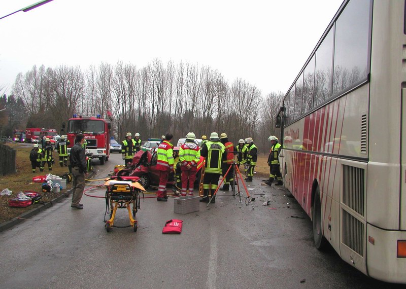 Nach der Erstversorgung durch Notarzt und Rettungsdienst wurde dieVerletzte mit dem Rettungshubschrauber in ein Münchner Krankenhaus geflogen - der Busfahrer und elf im Bus befindliche Schulkinder kamen mit dem Schrecken davon.
