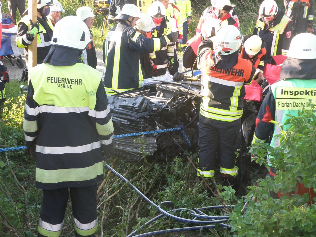 Durch die Wucht des Aufpralls wurde der beteiligte BMW von der Fahrbahn geschleudert und der Lenker in seinem PKW eingeklemmt. Das Fahrzeug wurde durch den Aufprall so stark deformiert, dass zu dessen Befreiung schweres technisches Gerät eingesetzt werden musste. Wegen der Schwere seiner Verletzungen wurde der Fahrer mit dem Rettungshubschrauber zur weiteren Behandlung in eine Klinik verbracht.