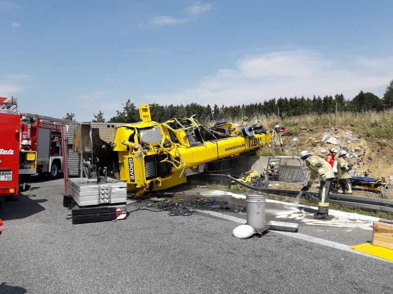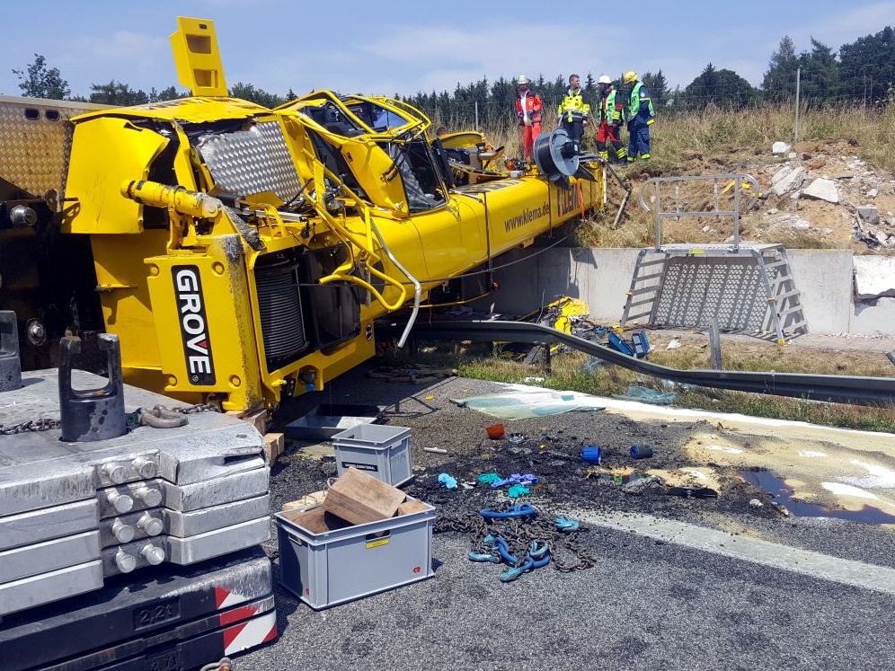 Schwerlastkran überschlägt sich auf der A8