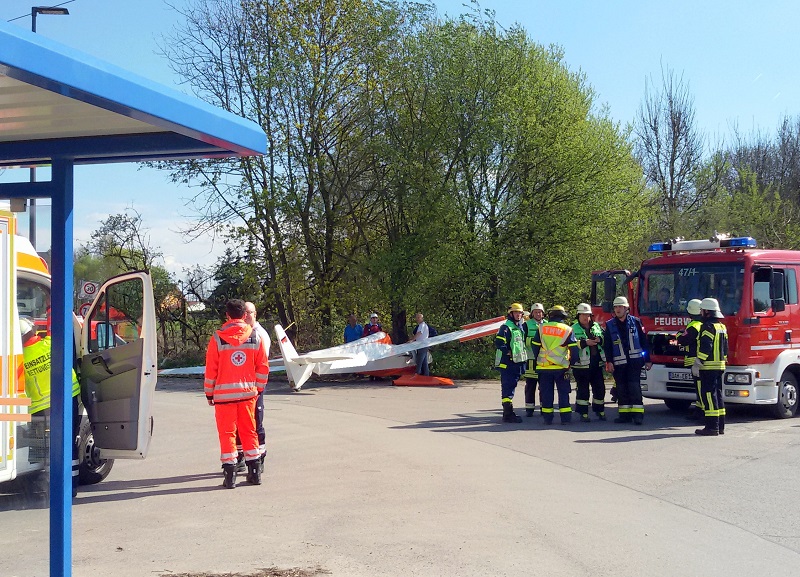 "Unfall mit Leichtflugzeug" so lautete die nicht alltägliche Einsatzmeldung für Feuerwehr, THW und Rettungsdienst am Montagnachmittag (10.04.2017) gegen 15.30 Uhr.