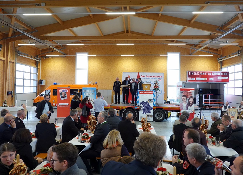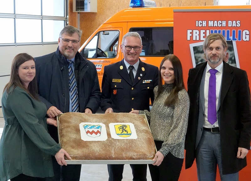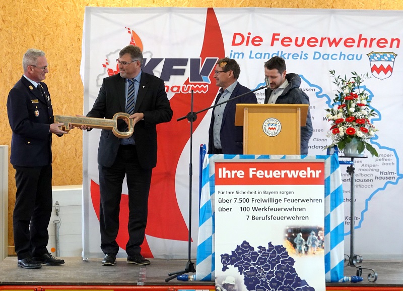 Anschließend erfolgte die symbolische Schlüsselübergabe an Landrat Stefan Löwl und an Kreisbrandrat Georg Reischl.