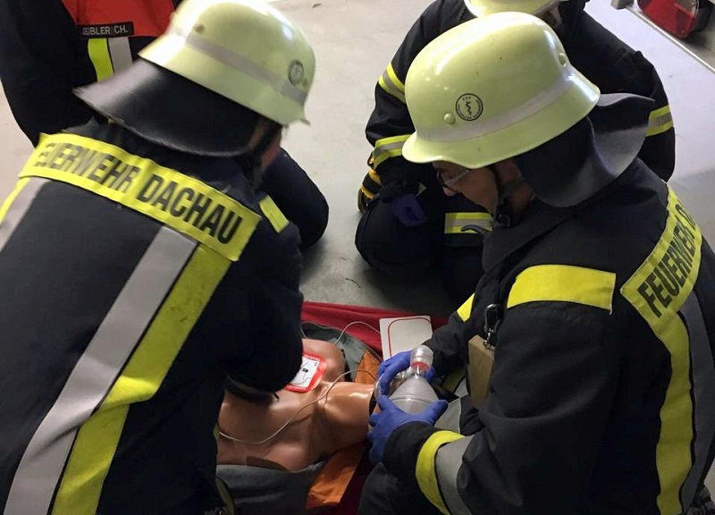 Am 02.12.2017 haben 18 Teilnehmer aus den Feuerwehren Dachau, Eichhofen, Eisolzried, Haimhausen, Hohenzell, Kiemertshofen, Sigmertshausen und Weichs den von der Kreisbrandinspektion durchgeführten Lehrgang "Ersthelfer Feuerwehr" absolviert. Im Rahmen der 16 Unterrichtseinheiten wurden von den Ausbildern Dr. Christian Günzel (Kreisfeuerwehrarzt), Florian Scharf (FF Dachau) und Alannah Buchhorn die Grundlagen der notfallmedizinischen Versorgung, wie z.B. das Erkennen lebensbedrohlicher Zustände und deren Behandlung, Erstversorgung von Traumapatienten und Wiederbelebungsmaßnahmen mit Hilfe eines Defibrillators, vermittelt.